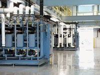 The main production building contains eight reactor cells, including small-scale custom synthesis equipment, 100-liter glass reactors, glass-lined reactors from 50-gallon (189L) to 2,000-gallon (7570L) capacity, high-pressure reactors, distillation equipment, and continuous polymerization units. Most of the production requires special handling that needs classified electrical systems as well as a foam sprinkler system, NFPA 68, damage limiting construction and NFPA 69, vapor detection and evacuation ventilation.